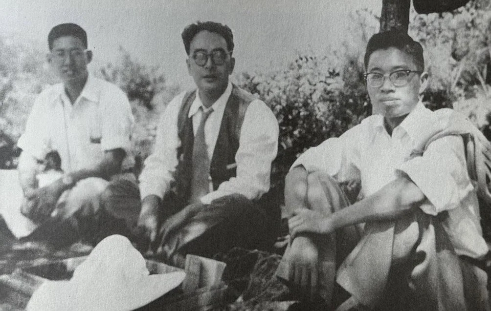 中坐者為郊遊中的唐君毅先生
